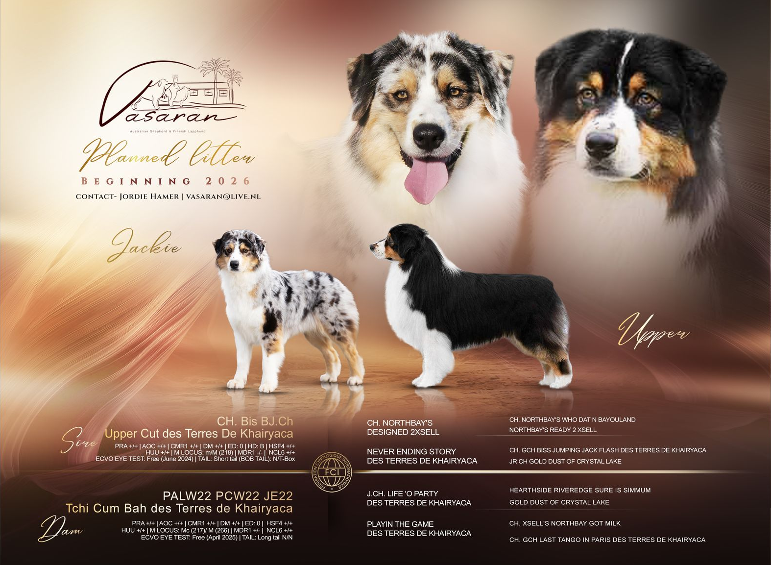 We have mated our beautiful girl Tchi Cum Bah des Terres de Khairyaca (Jackie) to the gorgeous Champion Upper Cut des Terres de Khairyaca. Both dogs are fully tested and have great personalities. If pregnancy is confirmed we are expecting puppies in January 2026!